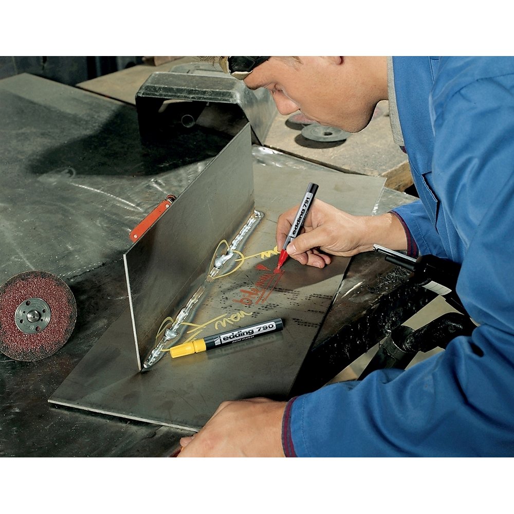 Markerul edding 791 este alegerea perfecta pentru marcarea si etichetarea permanenta pe materiale intunecate, transparente si netede, precum sticla, metalul si plasticul. Cu un varf rotund si un contur de scriere de 1-2 mm, acest marker asigura linii clare si precise. Cerneala sa este extrem de opaca, rezistenta la lumina, se usuca rapid si este impermeabila, oferind rezultate de durata atat in interior, cat si in exterior.